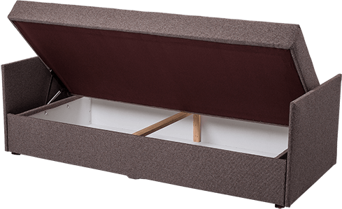 Leżanka dedykowana dla jednej osoby. Prosta i ponadczasowa w formie z dużą skrzynią na pościel.
