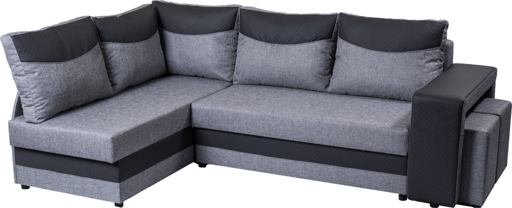 Bardzo gustowny i funkcjonalny narożnik z pufami w zestawie, który odmieni Twój salon.